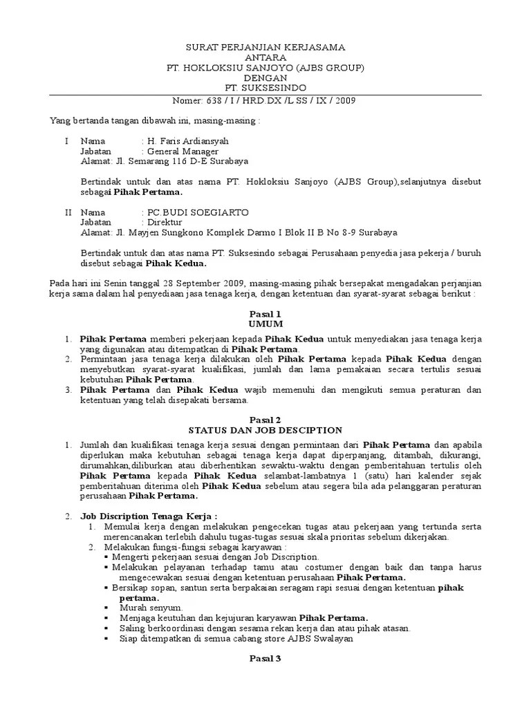 Contoh surat perjanjian kerjasama diperlukan untuk anda yang ingin membuat surat perjanjian bisnis. Contoh surat perjanjian kerjasama usaha yang baik harus memenuhi sejumlah syarat tertentu. Download contoh surat perjanjian usaha modal bersama doc. Pasal 1 ruang lingkup ruang lingkup pekerjaan sesuai dengan. Anda sedang membuka postingan contoh surat perjanjian kerjasama supplier yang berada pada kategori contoh surat dengan tag postingan berikut contoh surat.